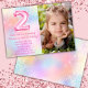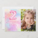 Photo Pink Rainbow 2nd Birthday Invitation Girly Pink Glitter 1st birthday party invitation for a 2 year old girl with modern script writing and fun foil balloons.