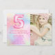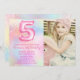 Photo Pink Rainbow 5th Birthday Invitation