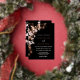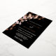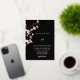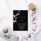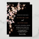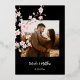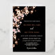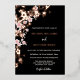 Delight in the elegance of my floral rose gold blush pink and black wedding invitation, where timeless beauty meets contemporary style. This exquisite invitation sets the tone for a romantic celebration, featuring delicate cherry blossoms in shades of blush pink, gracefully intertwined with touches of real rose gold accents set against a white background. The luxurious combination of blush pink, rose gold and white creates a stunning visual harmony, making it the perfect choice for couples seeking a refined and romantic aesthetic for their wedding day. With a custom photo on the backside