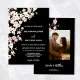 Delight in the elegance of my floral rose gold blush pink and black wedding invitation, where timeless beauty meets contemporary style. This exquisite invitation sets the tone for a romantic celebration, featuring delicate cherry blossoms in shades of blush pink, gracefully intertwined with touches of real rose gold accents set against a white background. The luxurious combination of blush pink, rose gold and white creates a stunning visual harmony, making it the perfect choice for couples seeking a refined and romantic aesthetic for their wedding day. With a custom photo on the backside