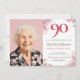 Photo Pink Watercolor Floral 90th Birthday Invitation