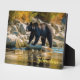 Plaque is shown with a photo print of a wild black bear in Yellowstone National Park.