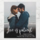Event postponed announcement template - simple photo change of date wine label. Modern Unsave the Date Photo label with full horizontal photo. Feature an elegant handwritten typography design with text „Love is Patient” and one horizontal photo you can change it easily. #3339 If you need help or matching items, please contact me.
