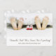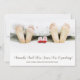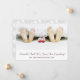 Cute modern photo of parents feet and baby socks under bed covers with whimsical baby footprints on the reverse side of the announcement and your names in script. Add your names and estimated month of baby's arrival.