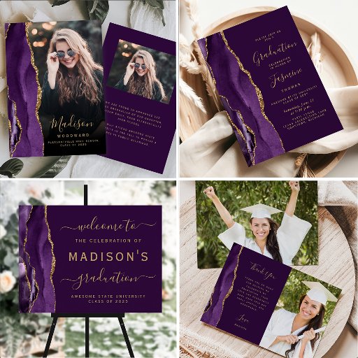 Chic Purple Plum Gold Agate Graduation SuiteDesigned by Akhates Designs