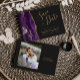 This elegant modern save the date card features a purple watercolor agate border trimmed with faux gold glitter. The customisable text combines gold-coloured handwriting script, copperplate and italic fonts on an off-black background. Easily replace the sample image on the back with your own vertical photo, and add additional information such as the URL of your wedding website.
