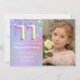 Photo Purple Pink Glitter 11th Birthday Party Invitation
