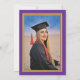 Parents or guardians proudly announce the graduation of a child with this card. Photo and Purple background with gold borders. The photo and all text are easily changed with the template. Selecting “Personalize this design” offers you several edit options to easily change the text (wording, plus type font, color, size, position) and to edit the design elements. You may also want to scroll down to the section “Transfer design to a product” for a few suggestions about other items this design can be used on. Downloadable for sending by phone or email.