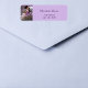 Personalise and add your photo, name and address. Purple letters. Violet, lavender coloured background.