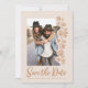 Set the tone for your big day with this Boho Earthy Brown Beige Terracotta Photo Save the Date Card with Double-Sided Print, with qr code and your website in the back side. Designed for effortless personalisation, the front features your favourite photo with delicate hand-drawn earthy brown roses, along with your names, wedding date, and “invitation to follow” text, all in a soft romantic style.