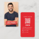 Bold modern photo contact design featuring a vibrant red layout and scannable QR code for instant connection. This customizable design includes space for a professional photo, name, social icons and contact details, making it perfect for entrepreneurs, realtors, freelancers and small business owners. A clean, eye-catching way to share your information and stand out.
