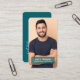 Modern photo contact design featuring a clean teal layout and scannable QR code for easy connection. Perfect for professionals, entrepreneurs and small business owners, this customizable design includes space for photo, name, social icons and contact details. A sleek, minimalist way to share your information and elevate your personal branding.