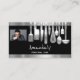 Firstly, let's talk about the design. The silver, black, and white utensils on a framed photo background immediately convey the message that this business is related to cooking, restaurants, or bars. The sleek and professional design makes it stand out from other business cards.