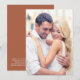 Enhance your vellum wedding invitation or save the date overlays with our terracotta background card stock featuring your photo on the front . On the back, input your wedding website address to create a QR code for your guests to scan to RSVP online and obtain additional wedding details such as accommodations.