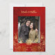 This elegant Chinese wedding invitation features a photo and, a real gold foil round gold double happiness symbol and gold foil flowers on a floral ruby red shimmering background. Bride and groom names in an elegant handwritten script. Chinese wedding invitation or tea ceremony invitation.