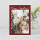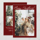 If you are looking for a simple minimalist beautiful and easy editable family photo collage Christmas card. This one is perfect for you. And as you see the design features a one photo on the front with white whimsical merry Christmas. And three photo on the back that can be changed by your photos. And your family name and year under it. With red maroon background and customisable Christmas greeting on the back of the card.