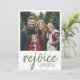 Photo Rejoice Merry Christmas Minimal Green Holiday Card