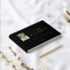 This retirement party guest book features a vertical photo frame with accents of real gold foil on a black background. Personalise this keepsake guestbook with the name of the retiree and years of service.