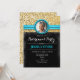 Elegant design in faux glitter gold and black with a hint of aqua blue.