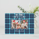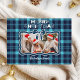 Photo Retro Blue Plaid Whimsical Christmas Holiday Card