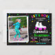 Let's roll with this fun roller skate birthday invitation! Features white roller skates with pink wheels and rainbow laces on chalkboard background with neon stars and confetti. Perfect for skating-themed birthday parties, roller rink celebrations. Retro design with bright colors creates excitement. Great for kids who love roller skating, disco, and retro vibes. Create a rolling good time for your skater's special day!