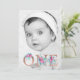 Photo Rose gold floral letter 1st birthday blush Invitation