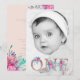Rose gold floral number 1 and upload your photo 1st birthday blush pink with hand painted elegant pink and turquoise watercolor flowers on chic rose gold letters with black and white filter.