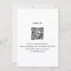 Back: add your wedding website url to the QR-code for details and/or RSVP.