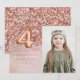 Photo Rose Gold Kids Girl 4th Birthday Party Invitation