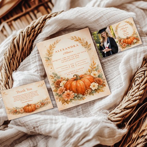 Photo Rustic Pumpkin Floral Fall Graduation Announcement