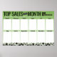 Awesome sales employee of the month poster featuring a fading, gradient green background and black stars on the bottom, with blocks for each employee photo for a 12-month spread, the perfect addition to your recognition and engagement programs.