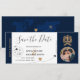 Destination Beach Wedding Boarding Pass Ticket Gold Plane Save the Date with heart and plane icon with faux gold crest. Add your photo