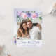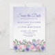 Modern periwinkle purple and pink watercolor floral photo save the date card, with a very light peri wash textured background. Customise names, dates, and information.