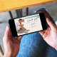 This design features a save the-date wedding photo card, with a scannable QR code, an elegant, typography style, with a photo overlay, and 2 photo templates, minimalist, calligraphy script Save the Date lettering.