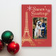 This beautiful couple's Christmas card design features a Paris theme with the Eiffel tower in gold foil against a beautiful Christmas red background. Easily personalize with a picture framed with gold foil. The text featured on the card is additionally in foil and can be personalized with a couple's name(s) and the year.