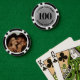 These custom poker chips feature a bold number on the front, which can be personalized with any number up to four digits. The front has a faux metallic silver background paired with crisp black fonts for a sleek, modern, and polished look. The back includes space for a photo, making them perfect for weddings, man caves, bachelor parties, game nights, or as a memorable personalized gift. All text, numbers, and design details are fully customizable to fit your style or event theme.