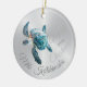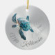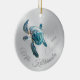 This elegant modern Hawaiian Christmas tree ornament features a shimmering turquoise 3D l turtle on a faux silver background and "Mele Kalikimaka" words in an elegant handwritten script. Customise it with the year on the front side and your photo at the back side.