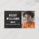 Modern graduation photo networking profile card with your name, year, school and photo. You can change fonts and font colours, move and resize elements with the design tool.