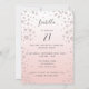 An invitation for a surprise birthday party. Template for your own photo. On front: Rose gold, pink text overlay: Shhh! It's a surprise. The text is written with a modern hand lettered style script. Text: 21st (or any age) Birthday. Decorated with faux rose gold diamond sprinkle. Rose gold, pink white gradient ombre background.