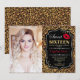 Photo Sweet 16 Birthday - Red Kiss Leopard Print Invitation. Sweet sixteen birthday party invitation with your photo. Features leopard print, script font, lips kiss and confetti. Classy animal theme design with faux glitter gold. Perfect for an elegant 16th bday celebration.