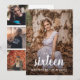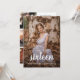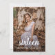 This modern Sweet Sixteen invitation allows you to highlight your favourite photos. With a gradient fill at the bottom, the white script will stand out over any photo. The back side is perfect to list the details for the party along with the photos.