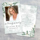 This memorial poem card can be given as a keepsake at a Celebration of Life or funeral service or sent as a special tribute to those who were unable to attend. This card can be personalized with a favorite photo and your choice of prayer or poem. Please note: the person depicted is used only for illustrative purposes please replace the photograph before ordering.