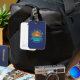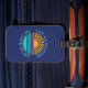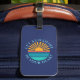 A round photo template on a dark blue background. Click personalise to change the sunset to your own image, and the text to your own, or buy it as is.