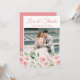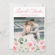 Wedding photo thank you card with pink peach floral design, pretty flowers with elegant script. Customise names, dates, and information.