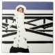 Clarence Coles Phillips was an American artist and illustrator known for his stylish images of women and his use of negative space resulting in his famous “Fadeaway Girls”.A woman bundled in a white coat stands against a backdrop of bold, black geometric lines, contrasting with a solid blue sky. The crisp attire is accentuated by buttons and minimalistic details, capturing a sense of elegance and composure.