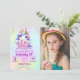 Personalized photo invite featuring a sweet unicorn illustration and pastel rainbow colors for her 10th birthday.