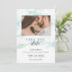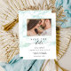 Elegant and photo Wedding (or other event) Save the Date with delicate watercolor wash in a blend of dusty blue, turquoise and soft green hues.Gold geometrical frame encasing your photo. Modern hand written calligraphy details. Back in graceful watercolor wash. Part of our "Airy Blue and Green Watercolor" collection with a variety of coordinating products available.