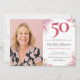 Photo Watercolor Floral Pink 50th Birthday Party Invitation