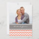 Wedding invitation custom photo cards in elegant and contemporary charcoal grey, peach pink and white modern chevron zigzags pattern. Customise these invitations with your wedding details and your own photo. Available in matching products for all of your wedding needs.