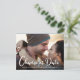 Even though circumstances require you to postpone your wedding date, show your guests your love goes on with your favourite engagement photograph on this wedding change of date announcement postcard. "Change of Date" is written in large contemporary white script across the bottom of your photo, and underneath you can personalise your names and whether your wedding has been postponed, venue changed, etc. On the reverse side, you can further personalise your message in more detail and add your new wedding date and venue.